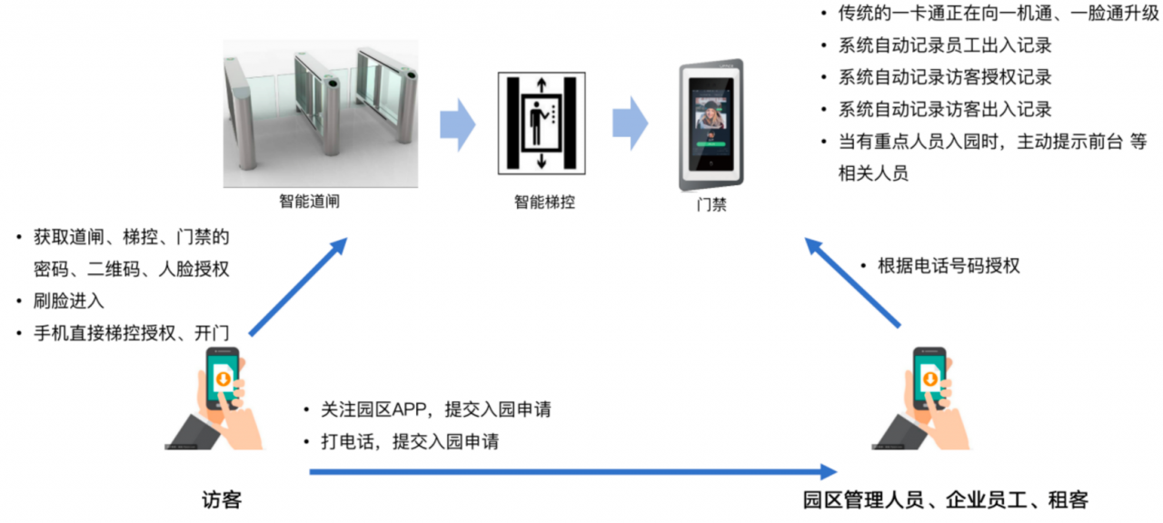 園區(qū)一臉通(tōng)管理(lǐ)系統集人(rén)像識别技(jì)術(shù)、人(rén)工智能、大(dà)數(shù)據、物聯網、雲計(jì)算(suàn)、無線通(tōng)信等新技(jì)術(shù)于一體(tǐ),實現基于人(rén)像技(jì)術(shù)的園區(qū)管理(lǐ)創新業務應用子系統的互聯互通(tōng),以及數(shù)據集成和(hé)數(shù)據建模等大(dà)數(shù)據功能,進而充分發揮數(shù)據的高(gāo)階業務價值,對園區(qū)管控實現智能聯動、圖形可(kě)視(shì)、實時(shí)調控,實現高(gāo)效運營,提升客戶價值。