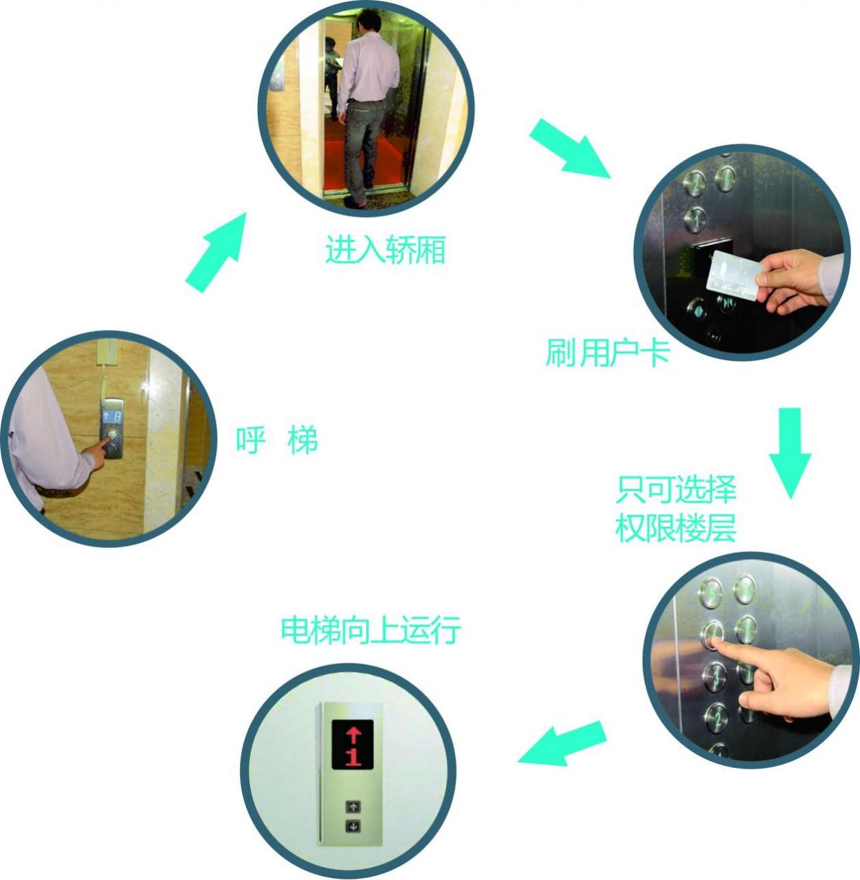 小(xiǎo)麗(lì)憑IC卡刷卡開(kāi)單元門(mén)進入到單元樓內(nèi),進入電(diàn)梯後刷卡,8樓按鈕自動點亮(無需手按)。下樓不控制(zhì),與未裝梯控的流程一樣。