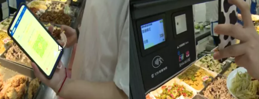 校(xiào)園食堂,多(duō)名學生(shēng)正在暢享用安康碼完成午餐支付的便捷。