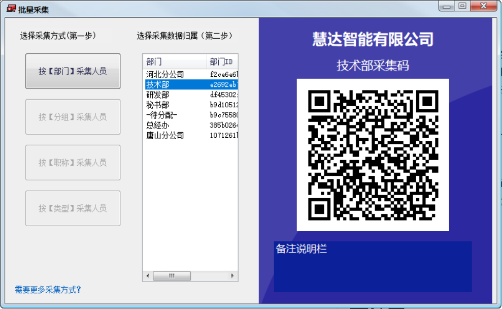 如果需要批量自助采集人(rén)員信息到指定【部門(mén)】,可(kě)使用此功能。